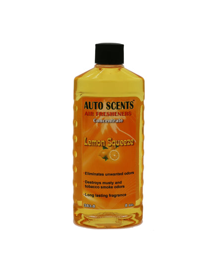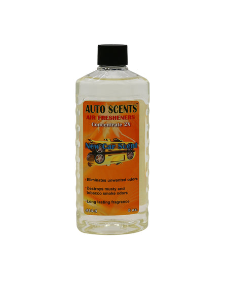 Auto Scents Air Freshener Concentrate makes up to two gallons of powerful long lasting fragrance spray. Removes stale or musty odors and improves air quality in vehicles, recreational vehicles, offices and homes. Useful in full-service car washes, detail shops, new car dealerships, used car dealers, RV dealerships and rental car agencies.