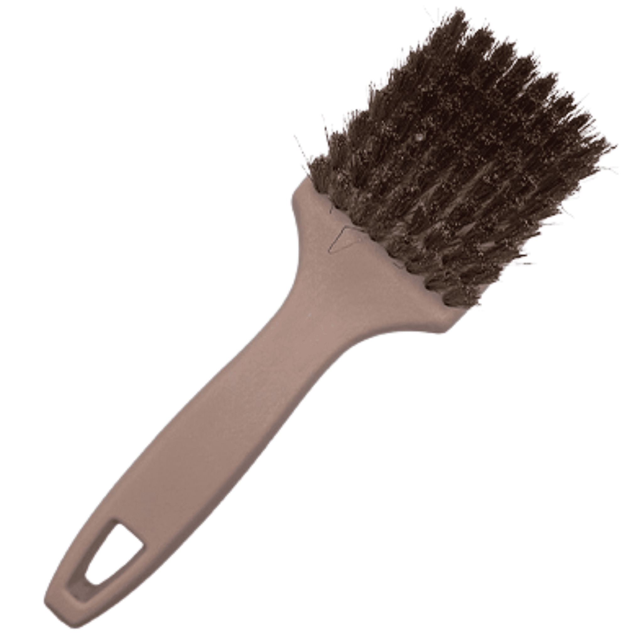 Densely packed brass wire bristles staple-set into a wood block. Bristles are crimped for added strength. Great for cleaning white sidewall tires.