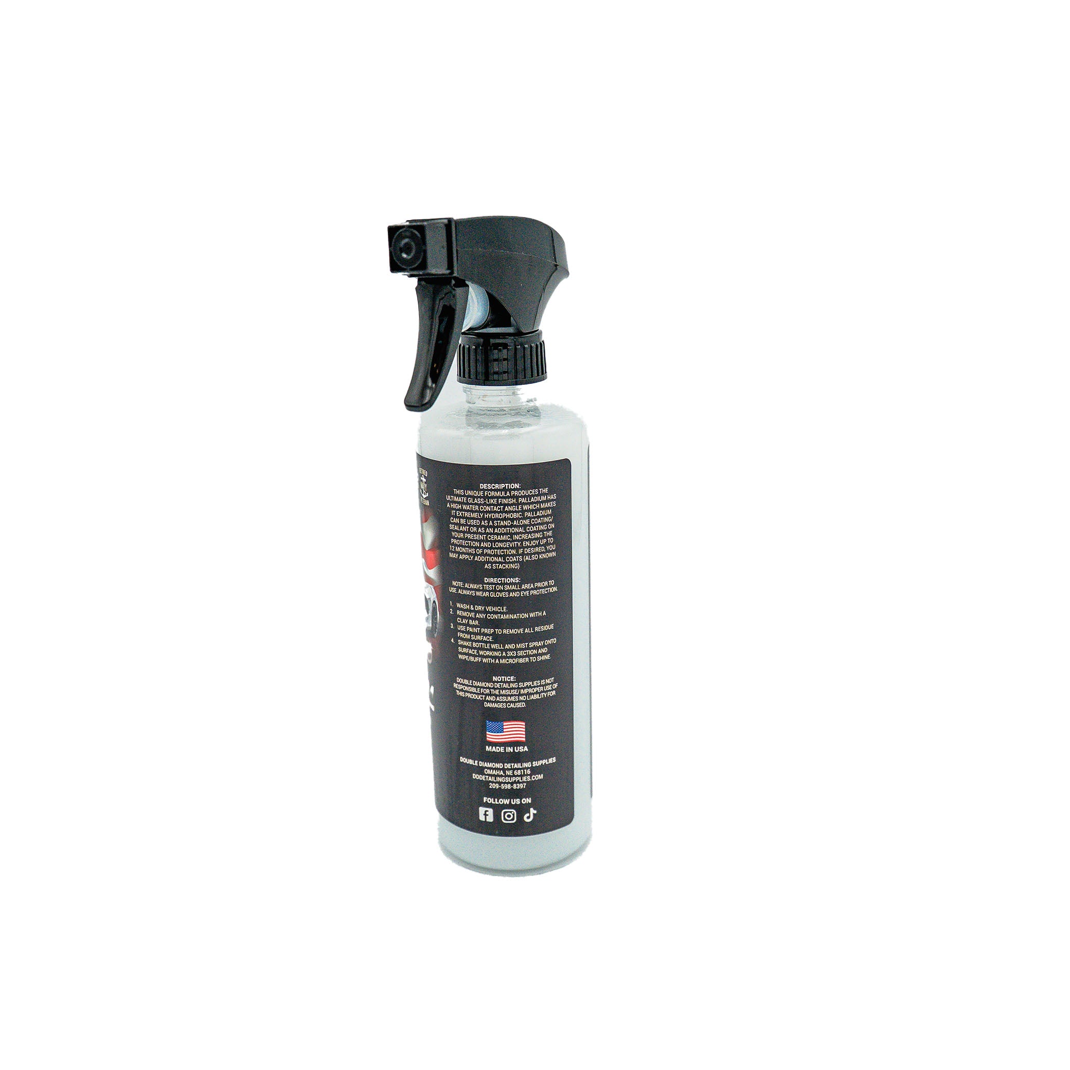 This unique formula produces the ultimate glass-like finish. Palladium has a high water contact angle which makes it extremely hydrophobic. Palladium can be used as a stand-alone coating/sealant or as an additional coating on your present ceramic, increasing the protection and longevity. Enjoy up to 12 months of protection. If desired, you may apply additional coats (also known as stacking). This ceramic spray sealant is also great for Boats and RV’s. It provides a high shine and UV protection up to 8 months. Palladium is extremely hydrophobic forcing water off the surface, in turn minimizing hard water spots.