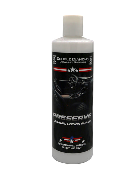 Preserve is a rich, creamy ceramic lotion formulated for vinyl and leather. It enhances the surface with a low sheen / new look appearance. It provides UV ray protection to help guard against damaging sunlight.