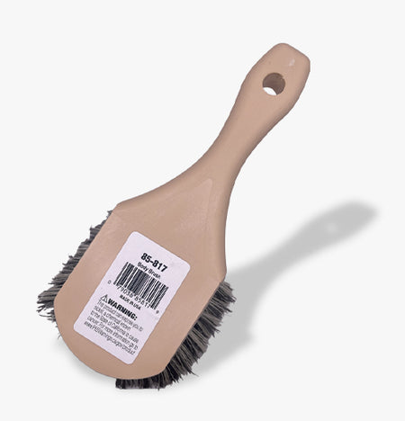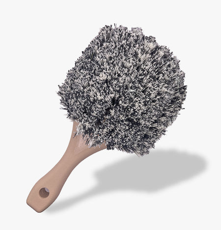Flagged-tip bristles are resistant to acids and detergents, and are staple-set into a sturdy foam block. Provides for gentle washing of any surface.