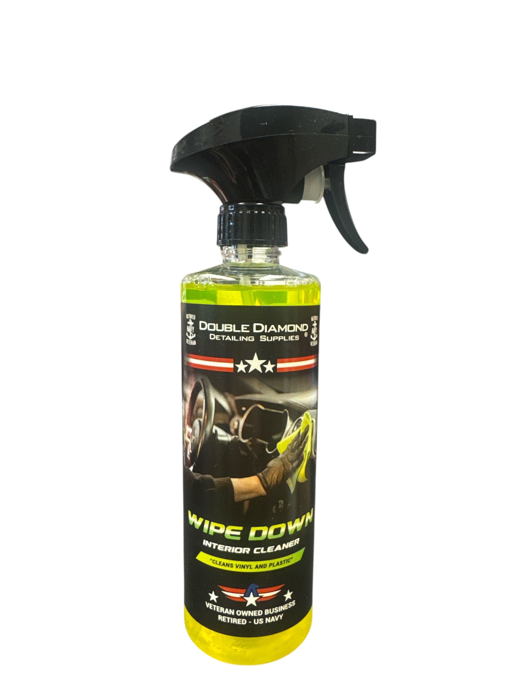 Wipe Down cleans vinyl and plastic without leaving a residue. Removes dirt and grime from surfaces and leaves a nice smooth clean look. Leaves no harsh smell behind.